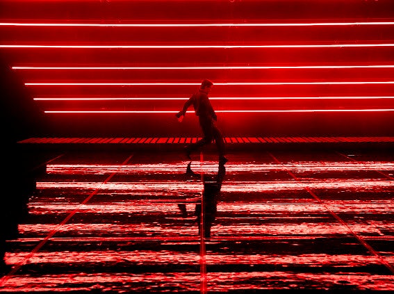 "Apart vermelding verdient het gewaagde lichtplan dat deze voorstelling begeleid. Met enige ondersteuning lijkt het of één heldere bewegende lichtbron de hele voorstelling in het licht zet, als een alziend oog, of een tastend zoeklicht, of een alles overstralend principe."